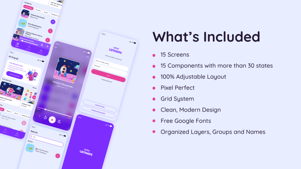 The Little Listeners App is built on a scalable design system. A single modification to fonts, colors, or components centrally updates throughout the entire design!